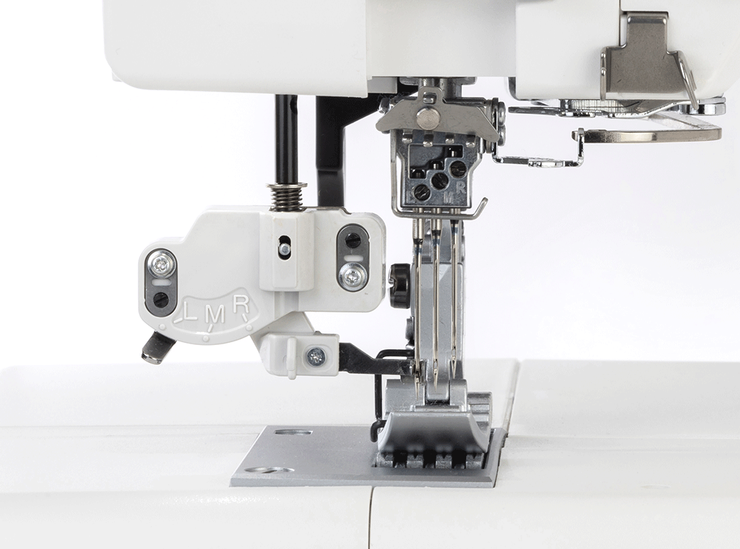 První v oboru! Vestavěný vodič stehu se snadno vyklopí na místo a poskytne vám trojitý nebo dvojitý horní krycí steh, který posune vaše dokončovací práce na profesionální úroveň.