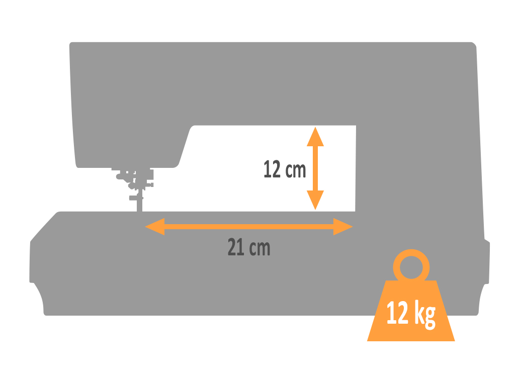 Zdvih kolenní pákou je ještě vyšší jak zdvih rukou, takže můžete opravdu šít i materiál, který jiné stroje ani nezvládnou.