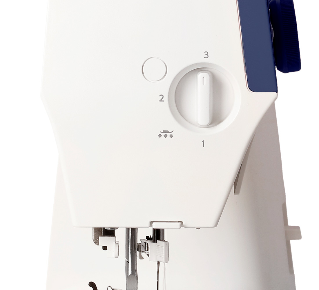 - Pro silné materiály a vrstvy - zvýšení přítlaku patky poskytuje lepší kontrolu nad materiálem a zajišťuje rovnoměrný posuv i velmi silných látek jako je džínovina, canvas nebo softshell