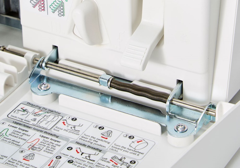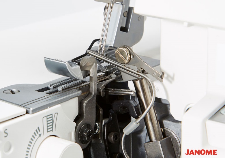 Jednoduché nastavení přítlaku patky zajistí bezproblémové šití různých typů materiálů od jemných po silné. Nastavení tlaku patky je důležité pro různé typy patek, kterých má Janome overlock nepřeberné množství.